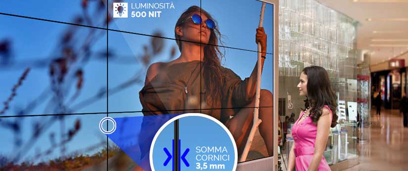 Ottieni videowall che lasciano a bocca aperta, creano un'immagine unica e semplicemente perfetta. Contenuti ricchi mostrati con una qualità eccezionale delle immagini in Full HD sbalordiscono i clienti e regalano un fortissimo impatto ai tuoi messaggi. La luminosità dei pannelli possono arrivare fino a 700 candele.
