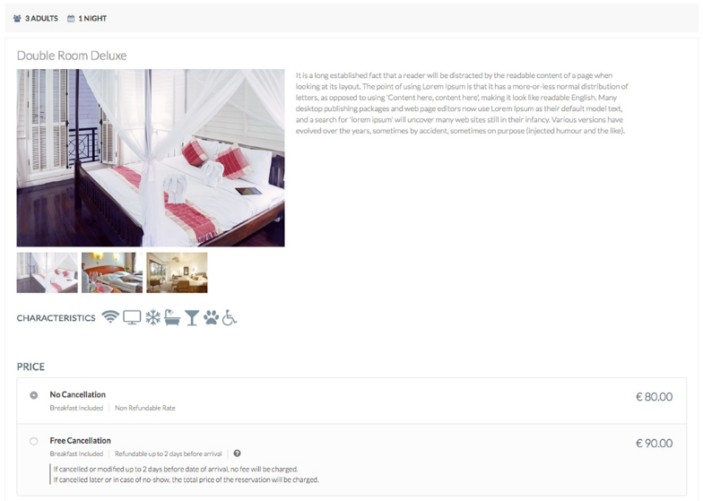 Il sistema di prezzi del nostro Booking è stato progettato per adattarsi a qualsiasi possibile modello di prezzo applicato dalla proprietà. Sappiamo quali strumenti e opzioni sono offerti agli hotel dai portali come Booking.com, Agoda, Expedia, Airbnb ecc ... e quindi abbiamo aggiunto il supporto per qualsiasi possibile modello di prezzo sul nostro software.