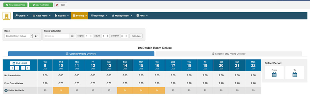 Qualsiasi hotel / host conosce le variazioni di prezzo durante alcuni giorni / stagioni dell'anno e troverà questa funzione simile allo strumento di calendario dei prezzi che la maggior parte dei portali ha come Booking.com, Agoda, Expedia, Airbnb ecc ...