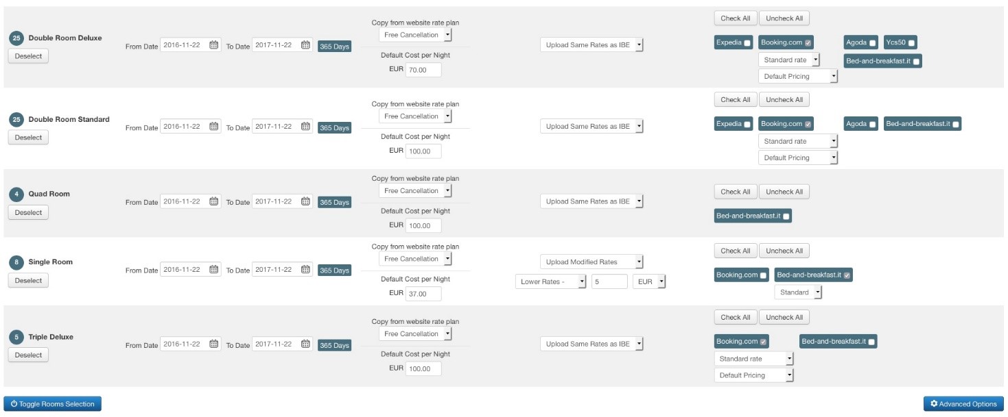 Con il Channel Manager puoi scegliere di caricare le tariffe sui canali, uguali o diversi da quelli sul tuo sito web. La sezione amministratore del channel manager ti consente di gestire tutte le tariffe con "Bulk Requests" per intervalli di date ampi o tramite aggiornamenti manuali delle tariffe individuali per determinati canali.